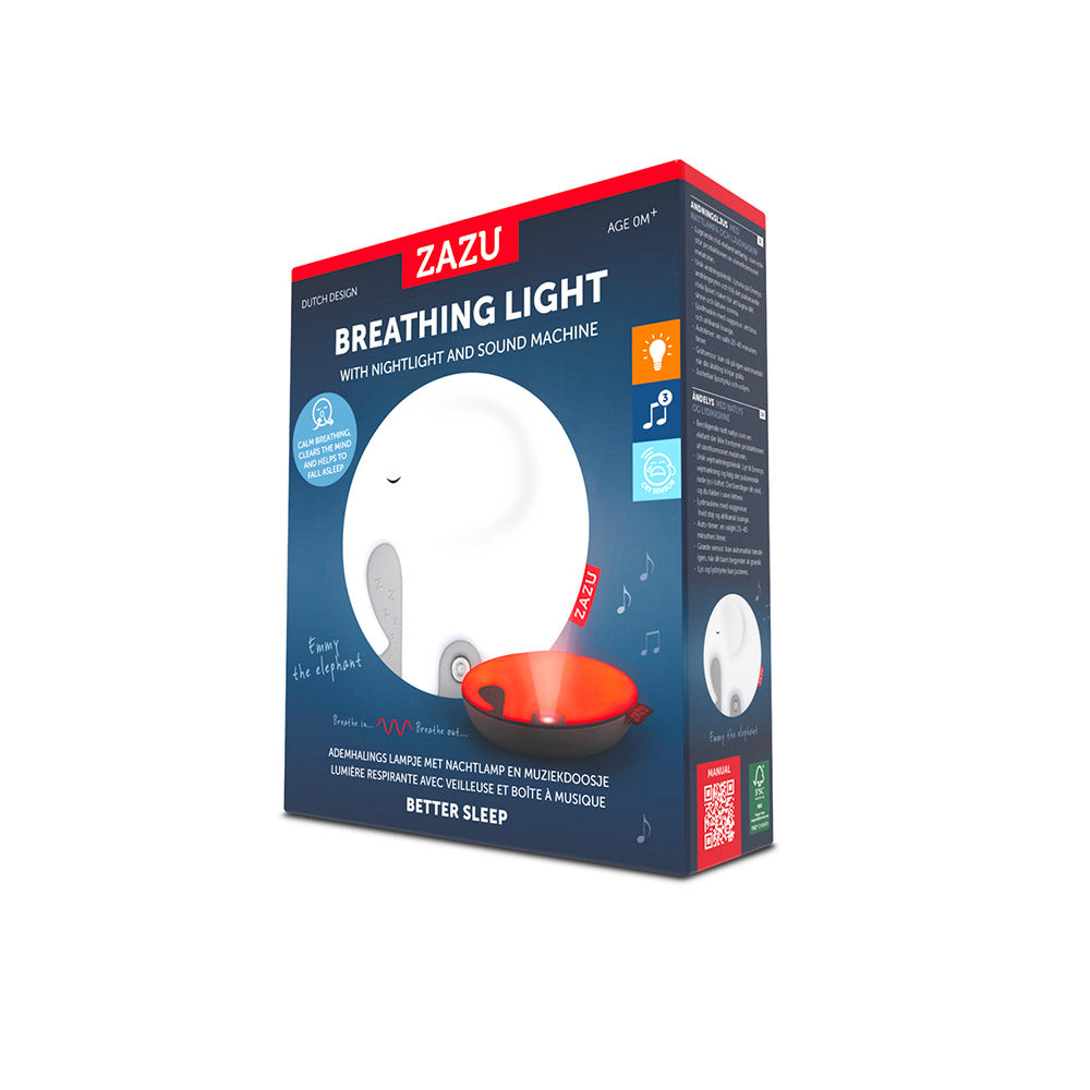 • Il suono del respiro di Emmy e il suo fascio luminoso aiutano a regolare il respiro del bimbo