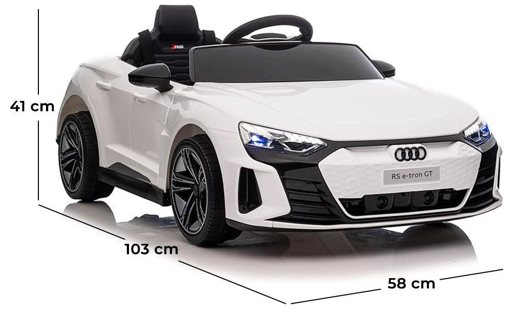 Bellissima Auto elettrica RS e-tron GT per bambini Full Optional. Auto di altissima qualità dotata di 2 motori con marcia avanti e indietro. Massima sicurezza in quanto è completa di telecomando a distanza per il controllo parentale da parte dei genitori, l'auto ricca di optional monta anche un lettore Mp3 con cassa stereo, luci led, un ingresso usb e un lettore sd card per far ascoltare ai vostri bambini le musiche che più amano.