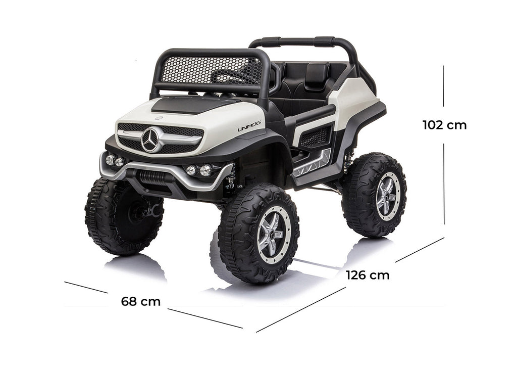 Macchina Elettrica per Bambini 12V con Licenza Mercedes Unimog Bianca