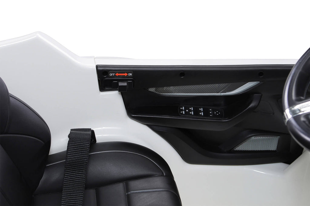 Elektroauto für Kinder 12V mit Schaukelfunktion, Mikrofon und Türöffnung mit Knopf Weiß Maserati Levante