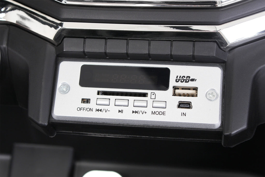 12V Elektroauto, ein echter zweisitziger Pick Up mit Liebe zum Detail. Die Besonderheit dieses Autos ist die Fernbedienung, tatsächlich können Sie das Auto fahren, wenn Ihr Kind noch zu klein dafür ist. Der Geländewagen ist sicher und macht Spaß, komplett mit Sicherheitsgurt, Türen und Kofferraum, die geöffnet werden können, Lichter, Geräusche und MP3-Anschluss für den Anschluss eines beliebigen Players, um Musik über die Lautsprecher des Fahrzeugs zu hören.