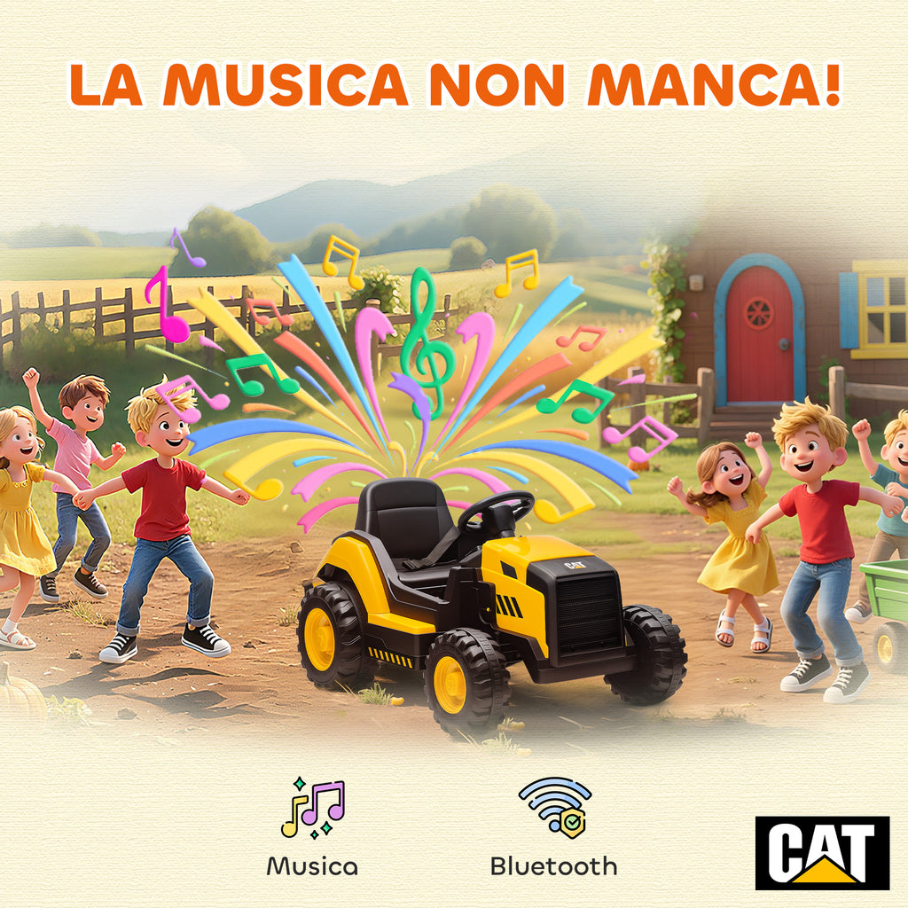 Trattore Elettrico per Bambini 3-6 Anni Marchio Ufficiale CAT 12V Guida Manuale e con Telecomando Giallo