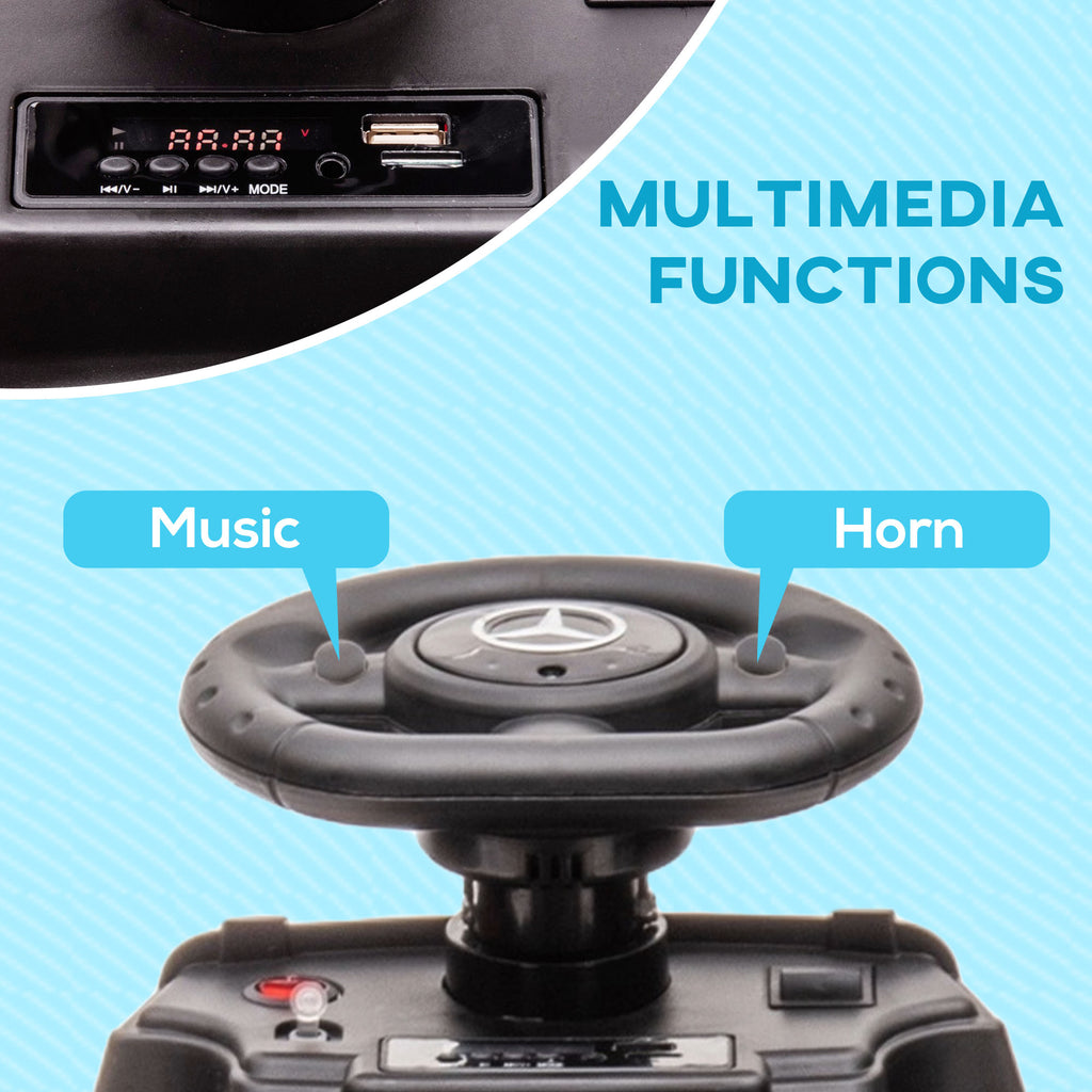 Per i piccoli amanti della velocità questa macchina elettrica per bambini firmata è perfetta per iniziare a farli viaggiare in modo sicuro. Con una velocità massima di 2 km/h, questa auto per bambini offre anche un clacson funzionante e un attacco USB per collegare la loro musica preferita. Le ruote sono resistenti all'usura e sono perfette per guidare su diversi tipi di terreno e farli divertire ovunque!