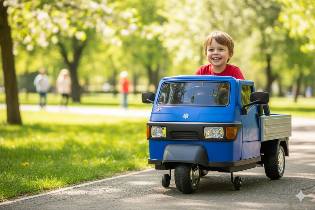 Preparati a un'avventura indimenticabile con l'Ape Car Piaggio per Bambini! Questo veicolo elettrico, fedele riproduzione dell'iconico furgoncino italiano, è pensato per regalare ai più piccoli un'esperienza di guida divertente e sicura. Con il suo design unico e una serie di funzionalità avanzate, diventerà il gioco preferito dei tuoi bambini.