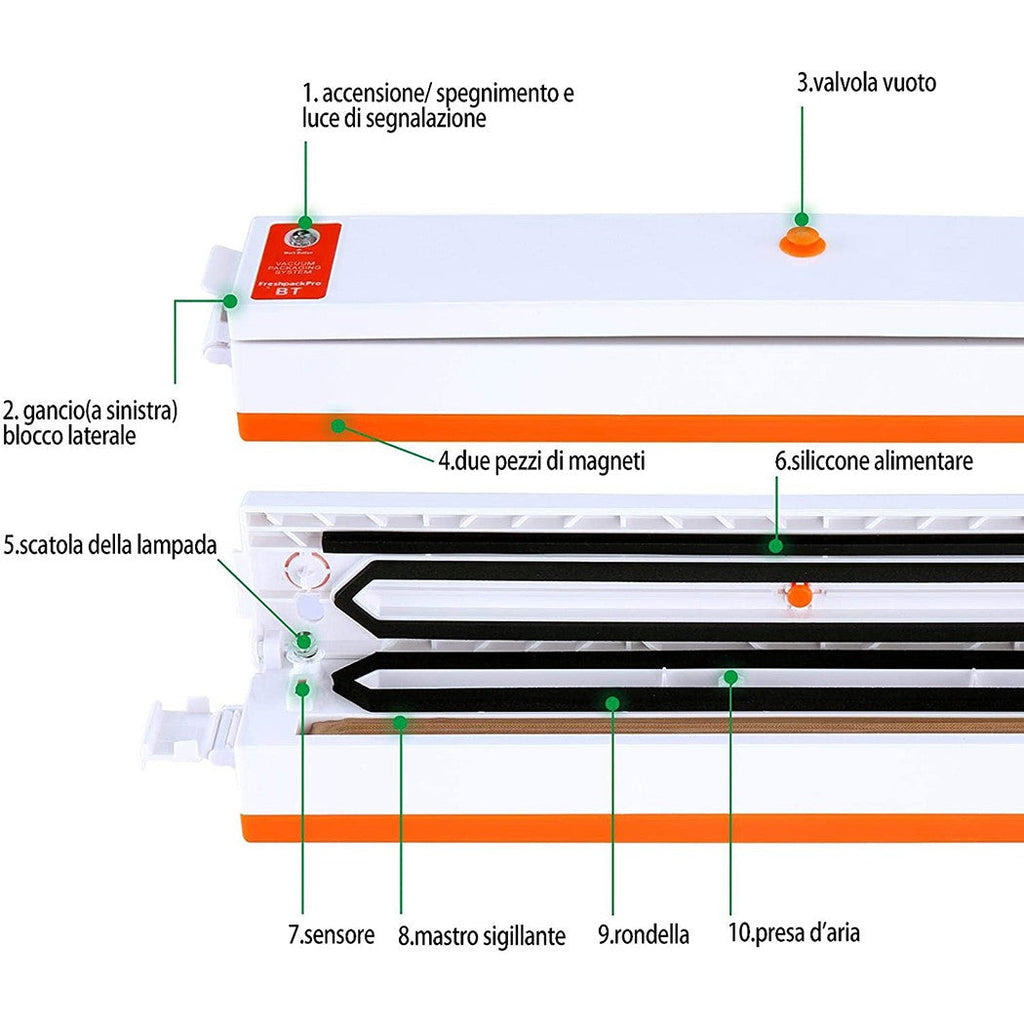 Der Beutelverschließer hilft, Lebensmittel länger zu halten. Verhindert das Wachstum von Schimmel und Bakterien, ideal zum Aufbewahren von Gemüse, Fleisch, Obst, marinierten Lebensmitteln. Hält Nährstoffe intakt und Lebensmittel 8-mal länger frisch als bei normalen Lagerungsmethoden, reduziert Verderb und Lebensmittelverschwendung. Das Paket enthält 10 Vakuumbeutel mit den Maßen 25 x 17 cm, ein Artikel, der mit anderen Beuteln mit sehr ähnlichen oder gleichen Abmessungen kompatibel ist. Mit den beiden Knöpfen im oberen Teil des Artikels können Sie die im Beutel abgelagerte Luft einatmen und ihn in wenigen Sekunden vakuumieren. Außerdem müssen Sie zwischen einem Schließen und dem nächsten einige Momente warten, um die Luft herauszulassen. Unser Vakuumierer konserviert frische oder getrocknete Lebensmittel, indem er die Vermehrung von Bakterien und Schimmelpilzen blockiert, die das Aussehen, den Geschmack und die Zusammensetzung von Lebensmitteln beeinträchtigen können. Es kann für Lebensmittel mit wenig Flüssigkeit verwendet werden, solange Sie darauf achten, dass während des Vakuumiervorgangs die Flüssigkeit nicht aus dem Beutel überläuft, da die Maschine elektrisch ist und immer trocken bleiben muss.