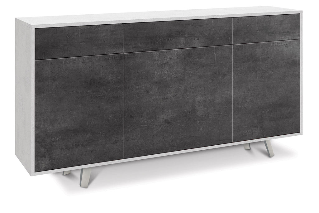 Madia 3 Ante 3 Cassetti 164x92x41 cm Ossido Bianco/Ossido Nero