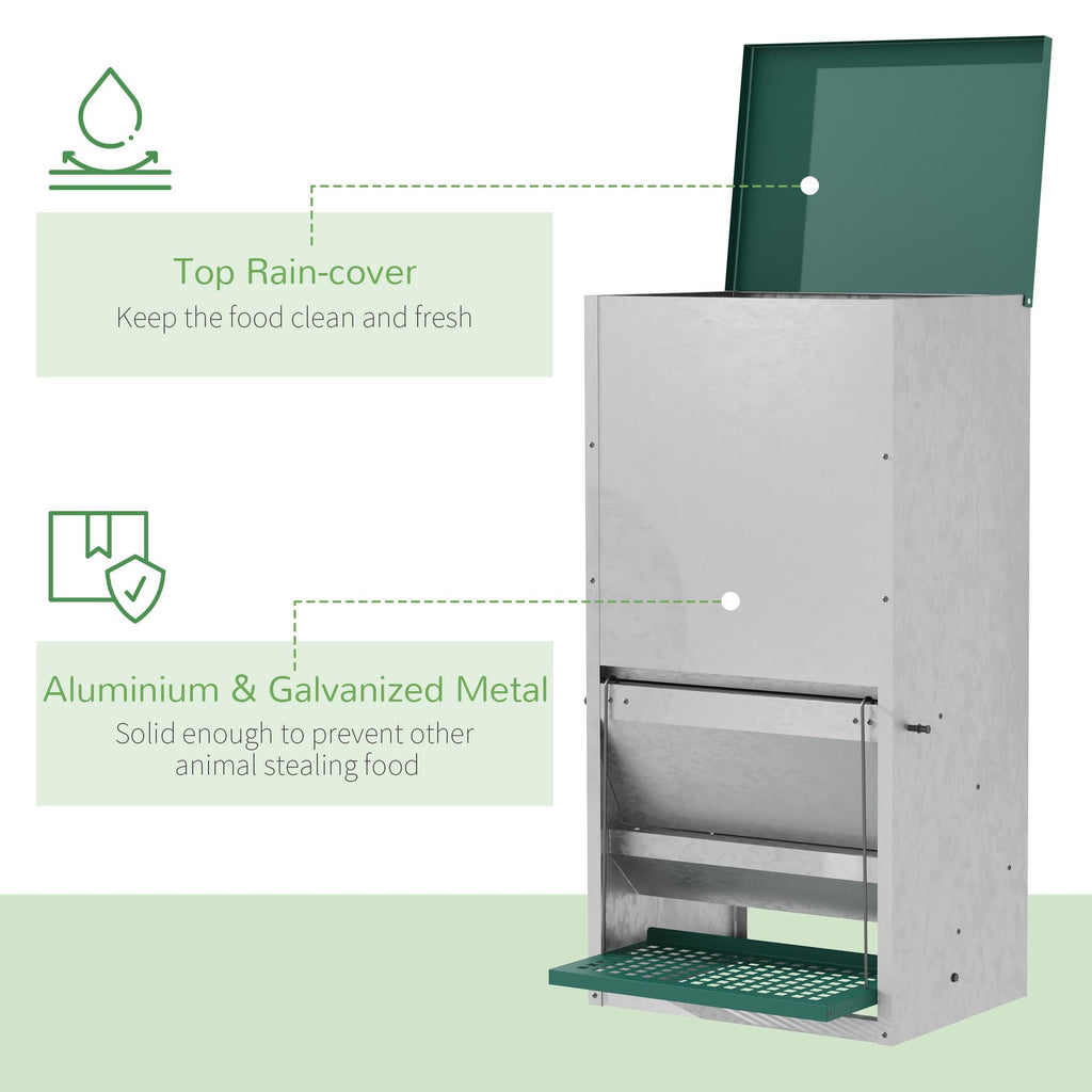 - STABIL UND LANGLEBIG: Dieser Futterspender für Hühner besteht aus robustem, verzinktem Metall und Aluminium
