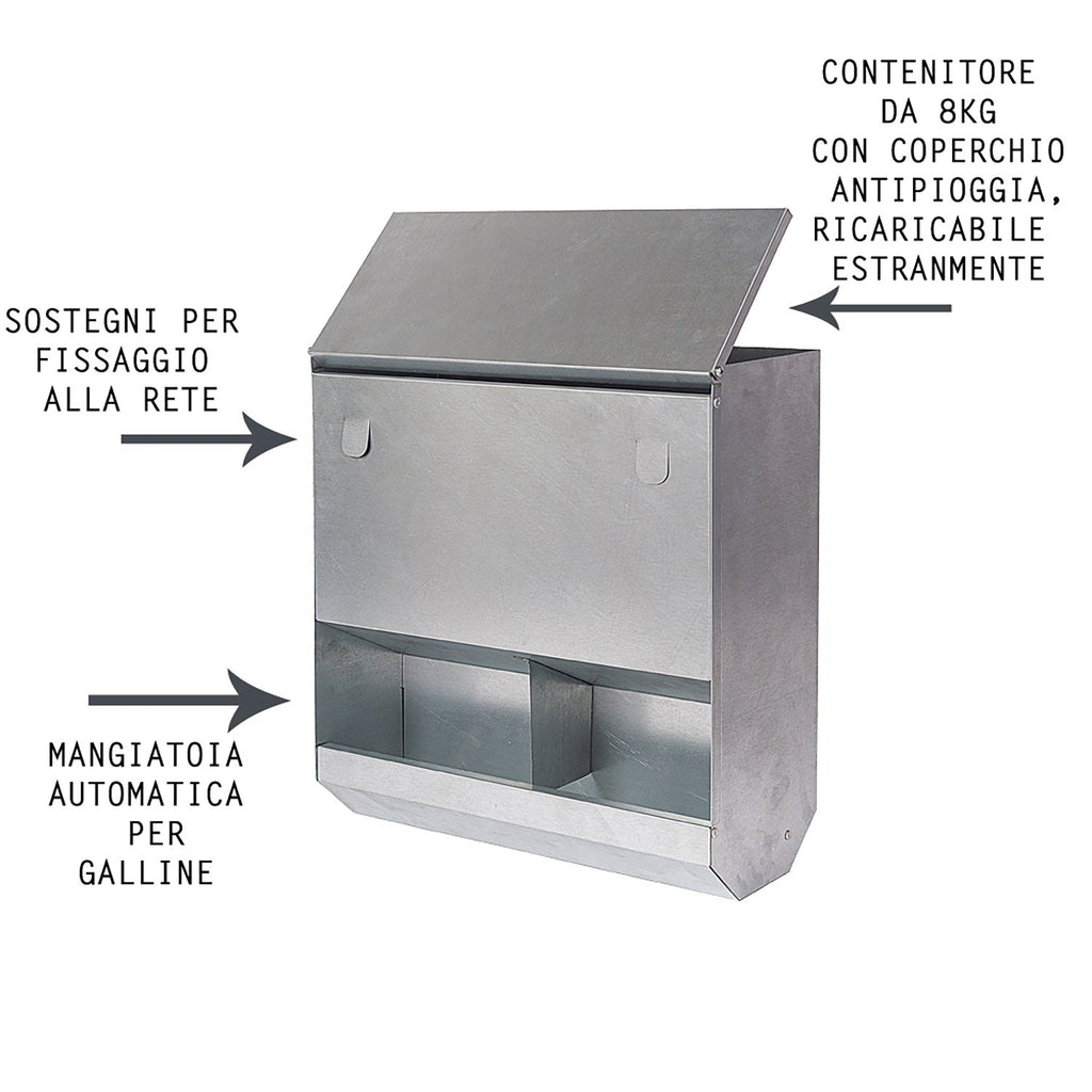 Mangiatoia per Galline 35x15x40 cm Capienza 8kg in Acciaio Zincato