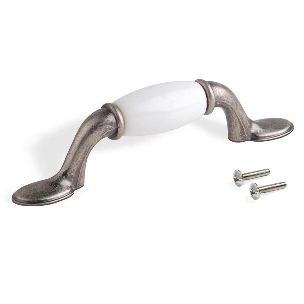 Der Möbelgriff Papua ist aus Zamak mit gealterter Bronze- und Silberoberfläche und Keramikdetails gefertigt. Es hat ein klassisches Design, das für ein rustikales, klassisches oder koloniales Möbelstück gedacht ist. M4-Schrauben zur Befestigung sind im Lieferumfang enthalten. Jeder Griff ist einzeln verpackt, um Stöße und Kratzer zu vermeiden.