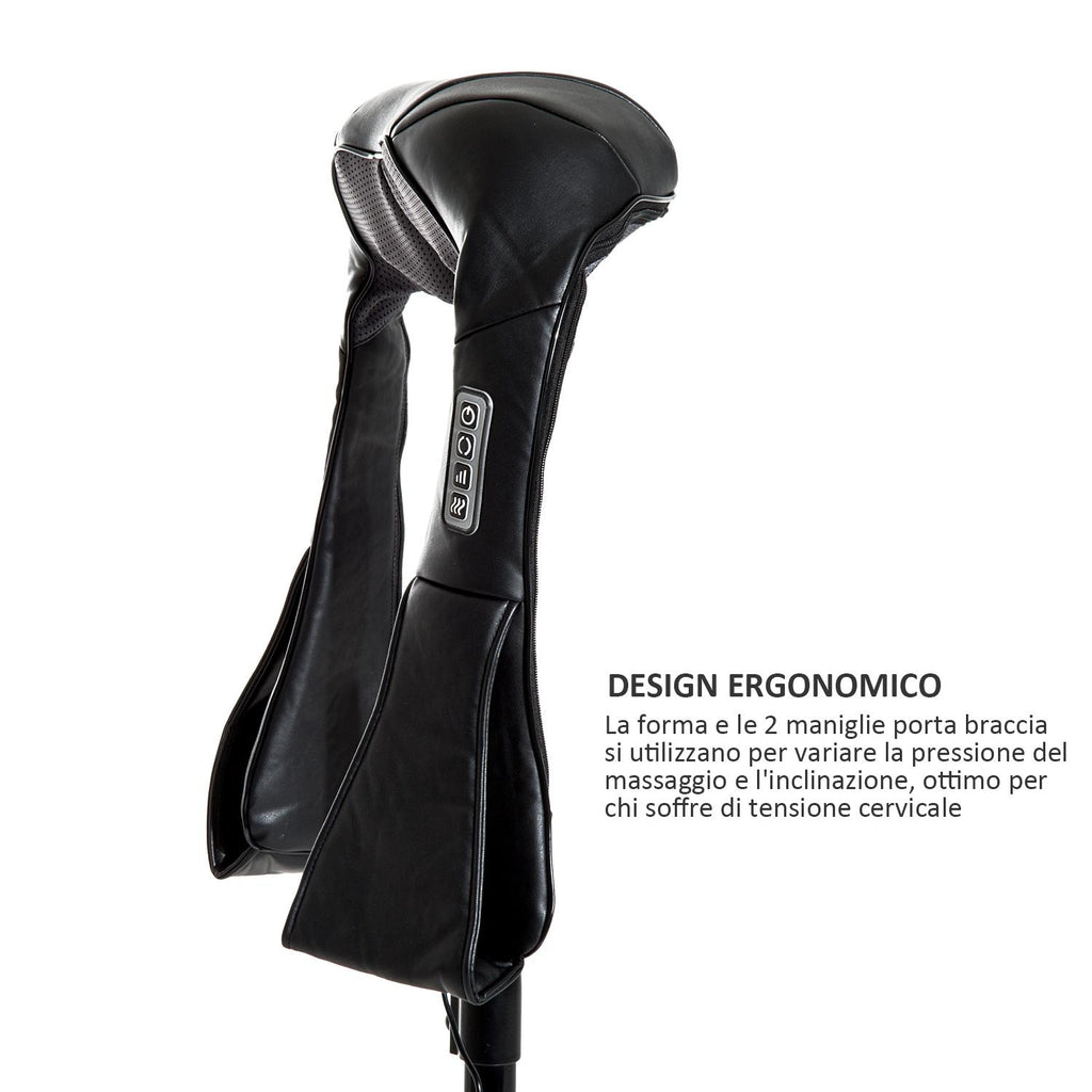 Seine Form und die 2 bequemen Haltegriffe der Arme dienen dazu, den Massagedruck und die Neigung zu variieren, ideal für diejenigen, die unter Nackenverspannungen leiden.