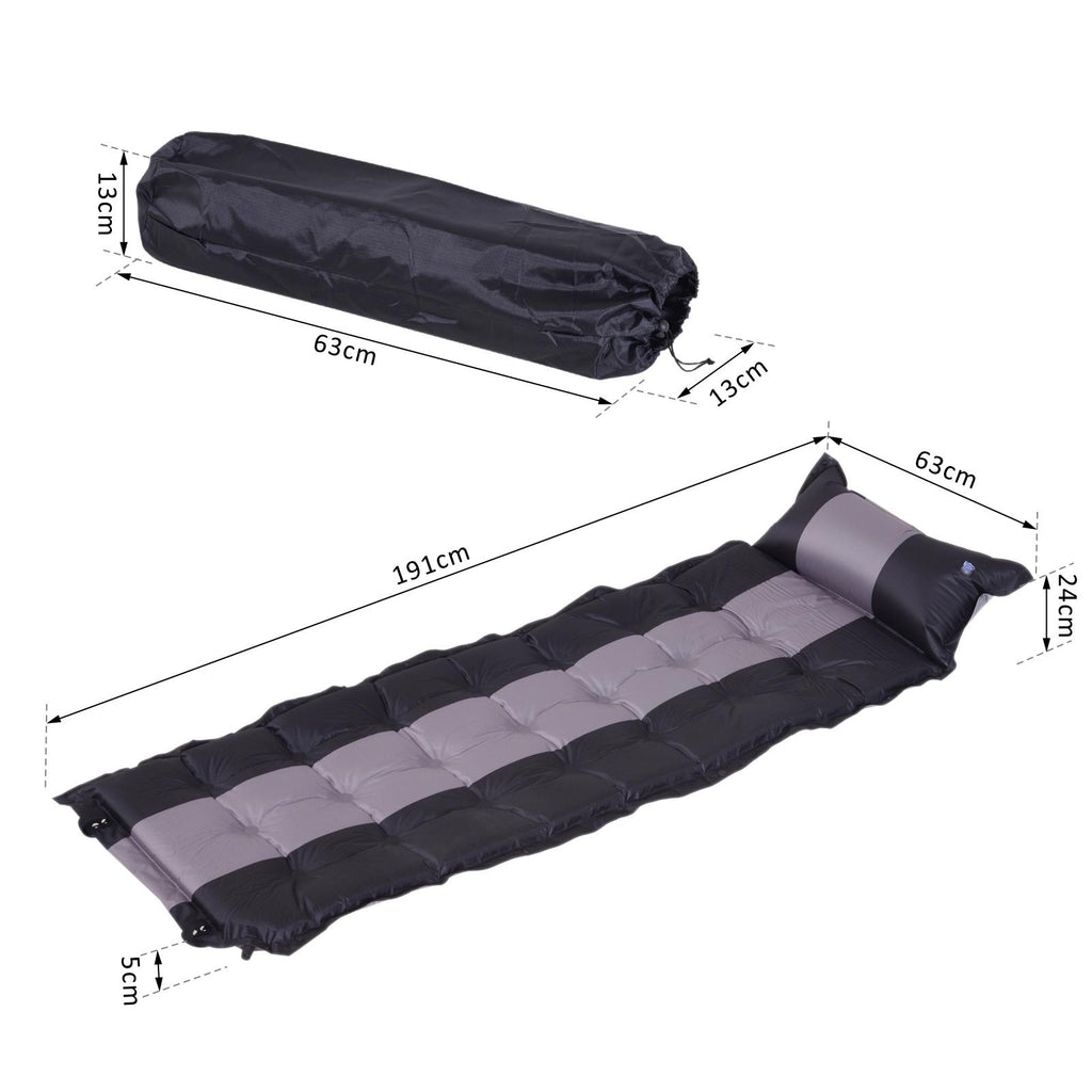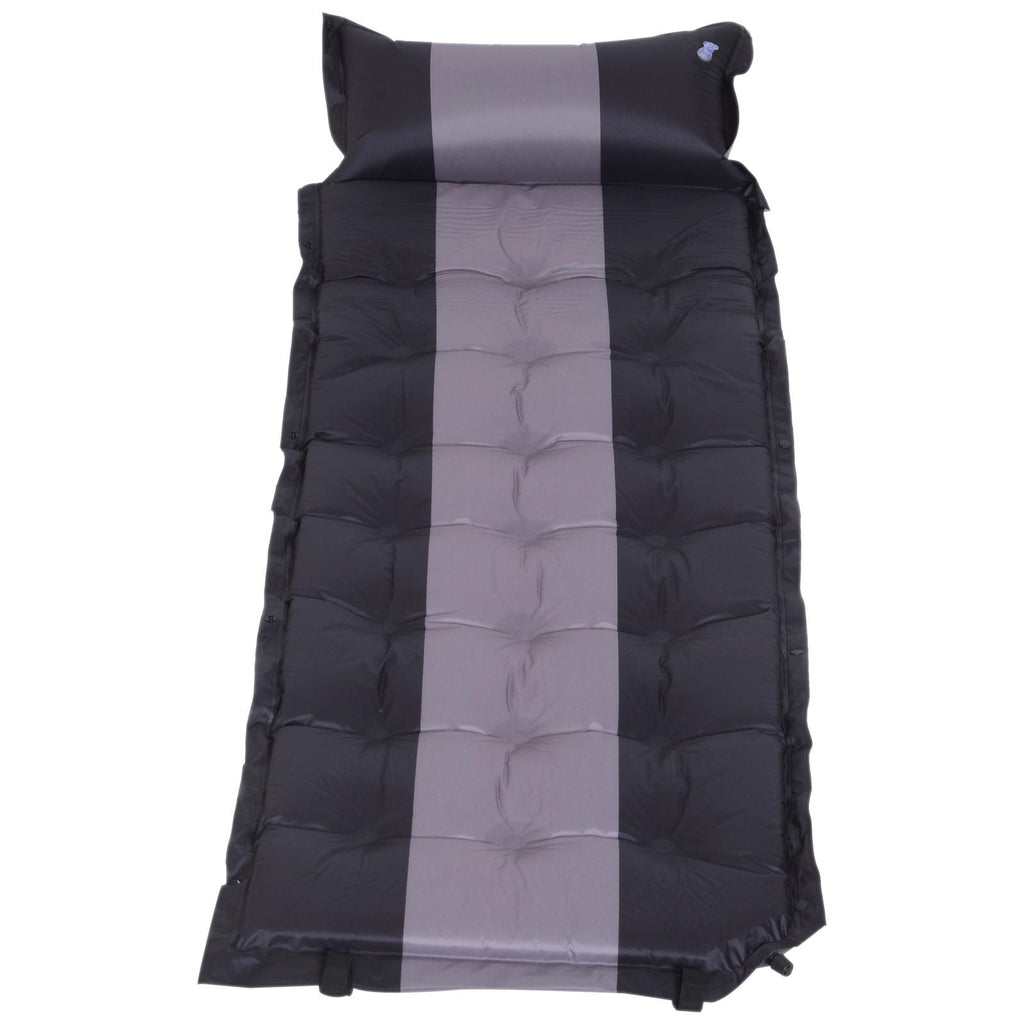 Aufblasbare Campingmatratze mit Kissen aus schwarzem und grauem PVC 191x63x5 cm