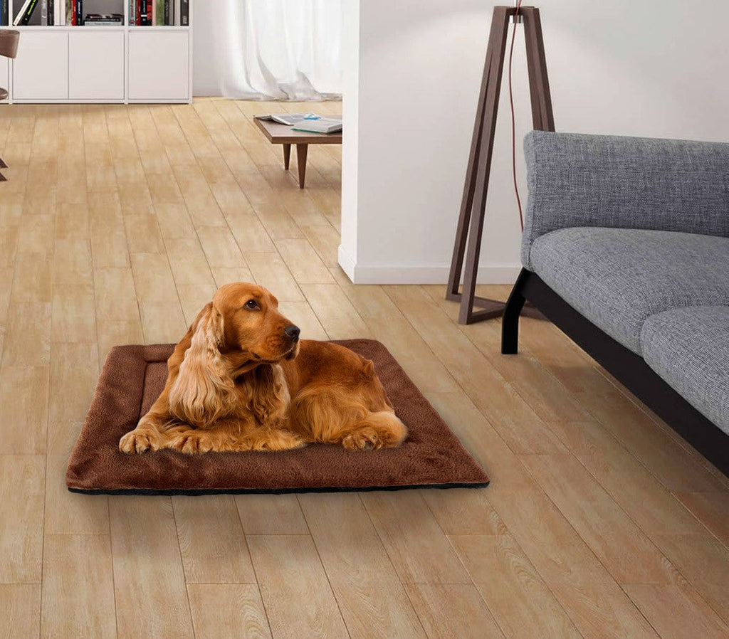 Eine weiche Matratze ist ideal, um Ihren Vierbeiner vor Bodenkälte zu schützen oder sein Nickerchen angenehmer zu gestalten. Weich und widerstandsfähig dank der Innenpolsterung, während die Außenseite mit warmem braunem Samt bedeckt ist. Für kleine und mittelgroße Hunde geeignet.