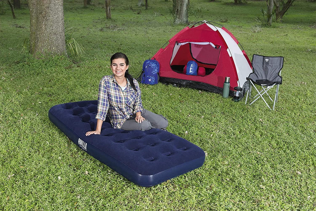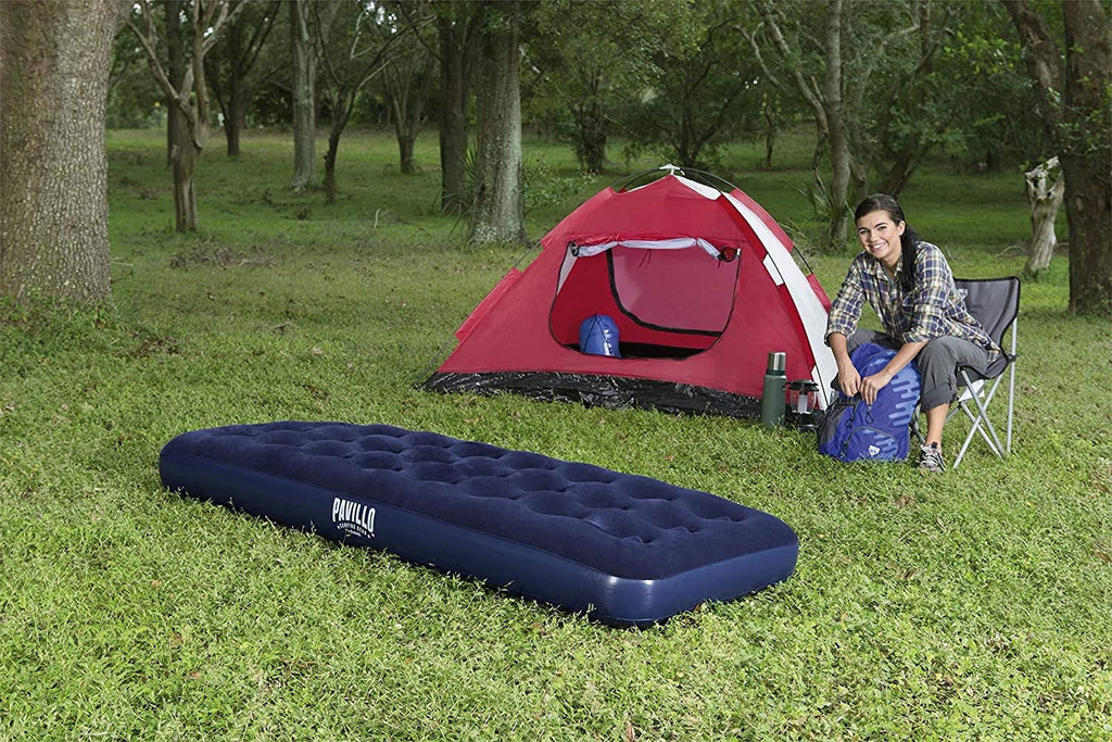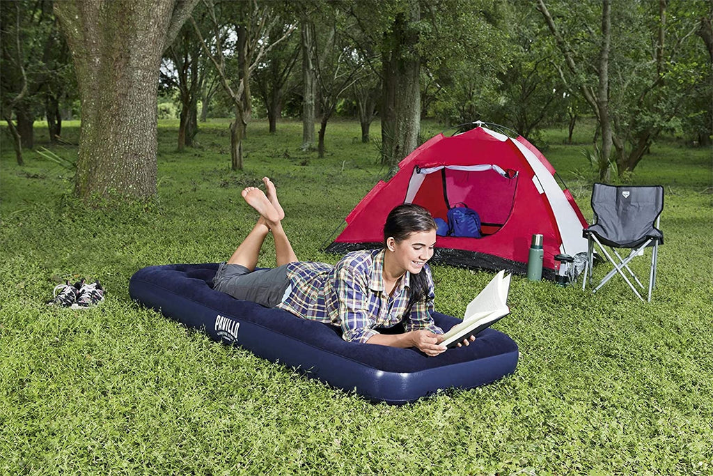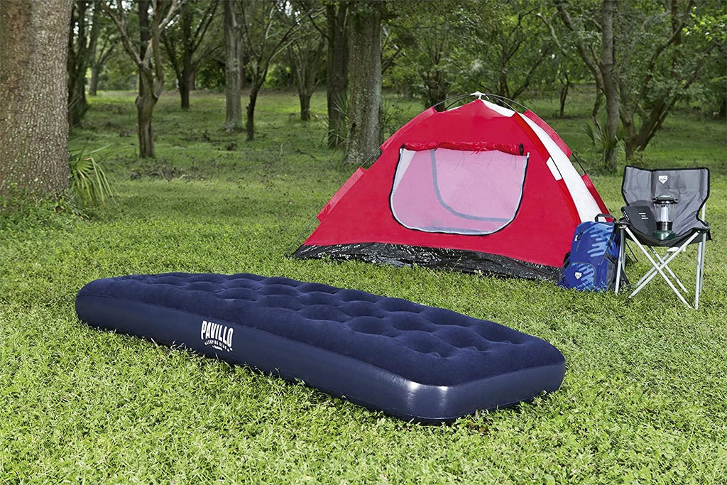Komfortables Schlaferlebnis beim Camping und anderen Outdoor-Aktivitäten: Die Blue Horizon Pavillo Isomatte von Bestway ist der ideale Begleiter für Campingausflüge oder Besuche von Familie und Freunden. Es besteht aus strapazierfähigem Vinyl und ist daher ideal für Outdoor-Bedingungen.