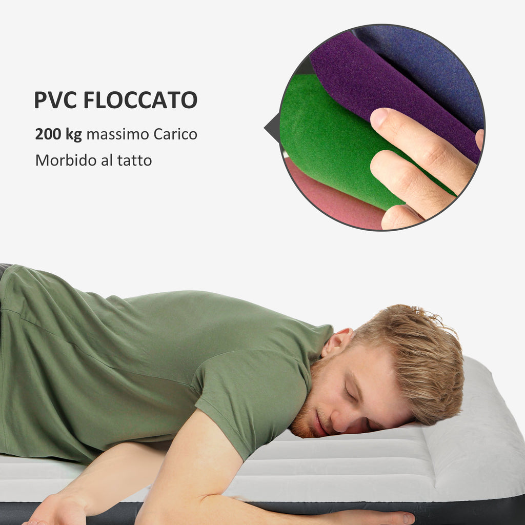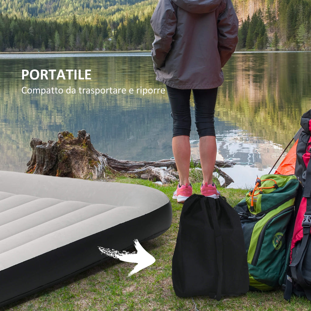 Materasso Gonfiabile Matrimoniale con Cuscino Integrato 152x203x30cm Pompa e Borsa Grigio