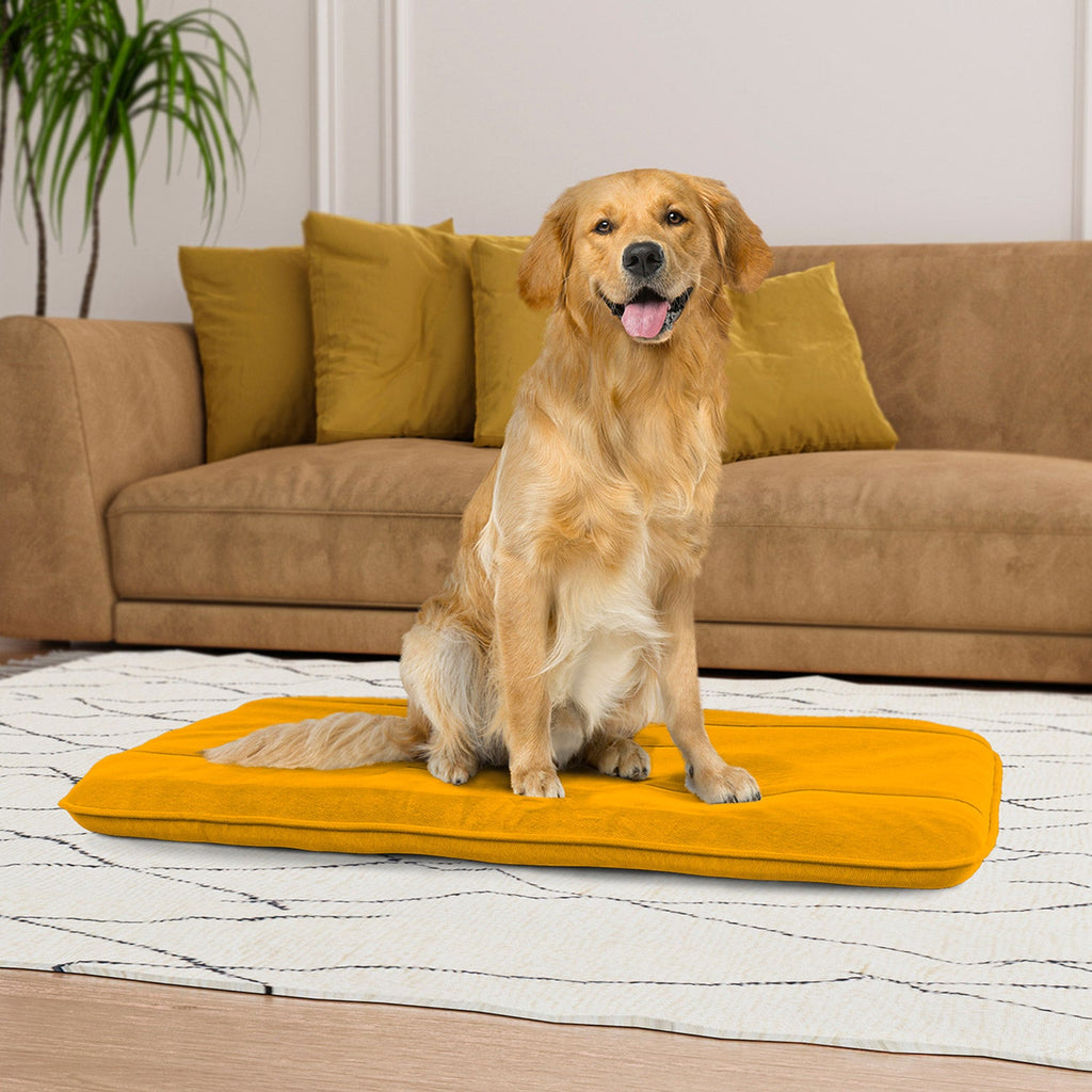 Gepolstertes und gestepptes Maxi-Kissen für Hunde und Katzen aus gelber Mikrofaser