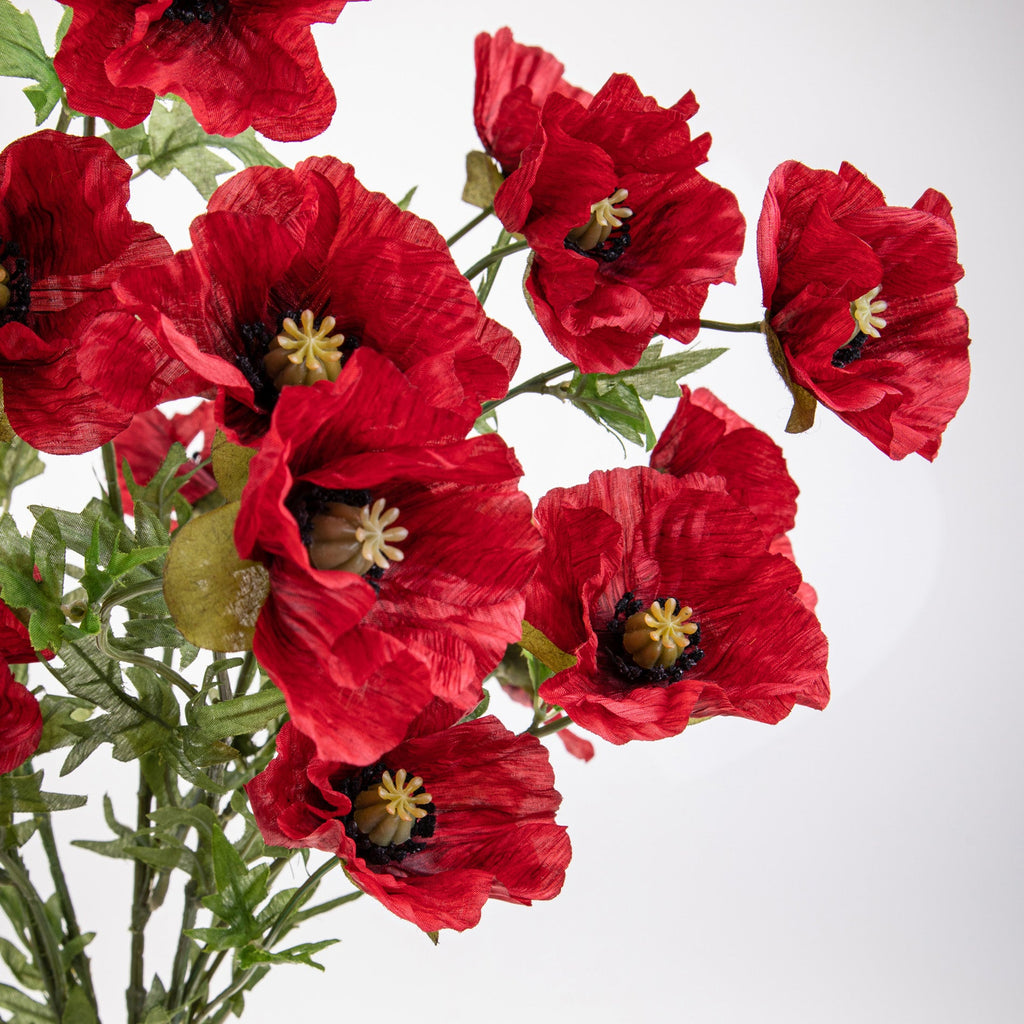Set 2 Bund 20 künstliche Mohnblumen H.63 cm Rot