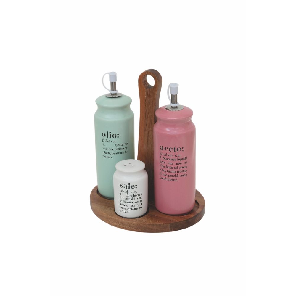 Menage Set aus Steinzeug Öl Essig Salz und Pfeffer Villa D'este Home Tivoli Victory mit Ständer
