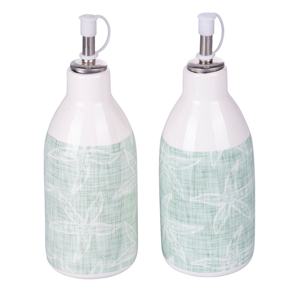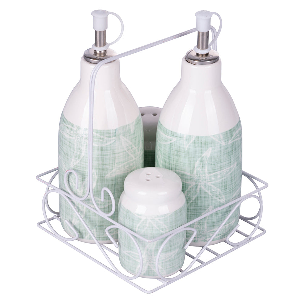 - Con stand in metallo bianco Oliera e acetiera con tappo salvagoccia
