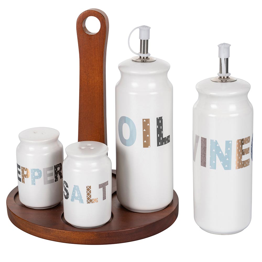 Menage Set Olio Aceto Sale e Pepe Ø6x20,5 cm 320 ml in Gres VdE Tivoli 1996 Luxury