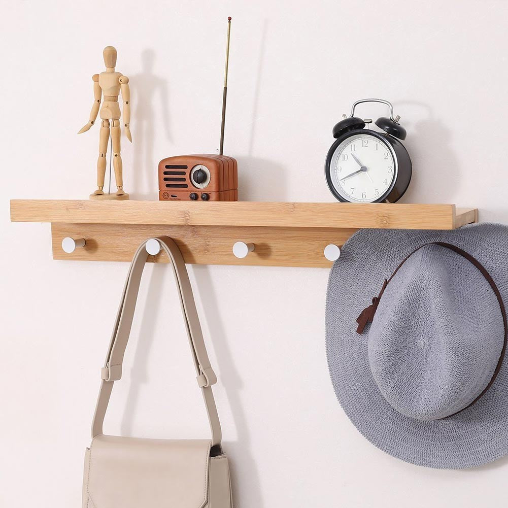 Wandregal mit 5 Haken 61x12x10 cm Handtuchhalter aus Bambusholz