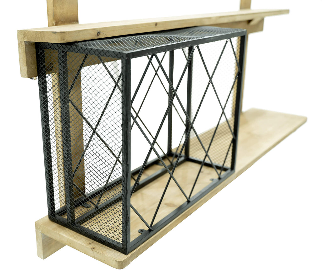 Dieses Uri-Regal im Industriestil eignet sich perfekt für die stilvolle Einrichtung von Innen- und Außenbereichen. Hergestellt mit einer soliden Eisen- und Holzstruktur. Multifunktional, denn das Uri Regal präsentiert neben den klassischen Holzregalen auch einen Flaschenhalter. Dank der hohen Qualität der Materialien ist es beständig gegen Witterungseinflüsse und schlechtes Wetter.