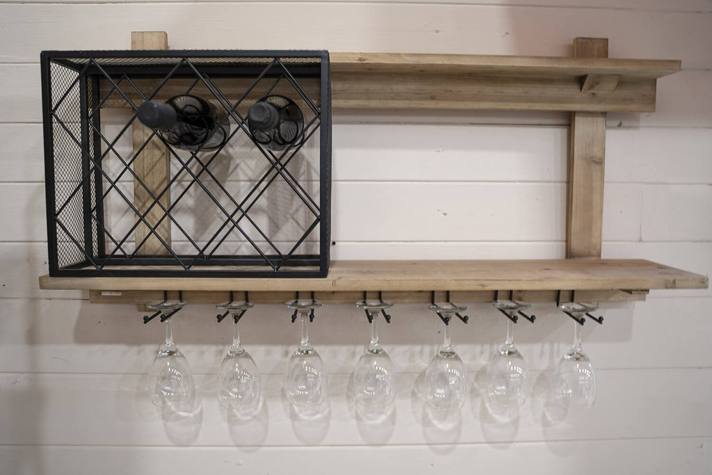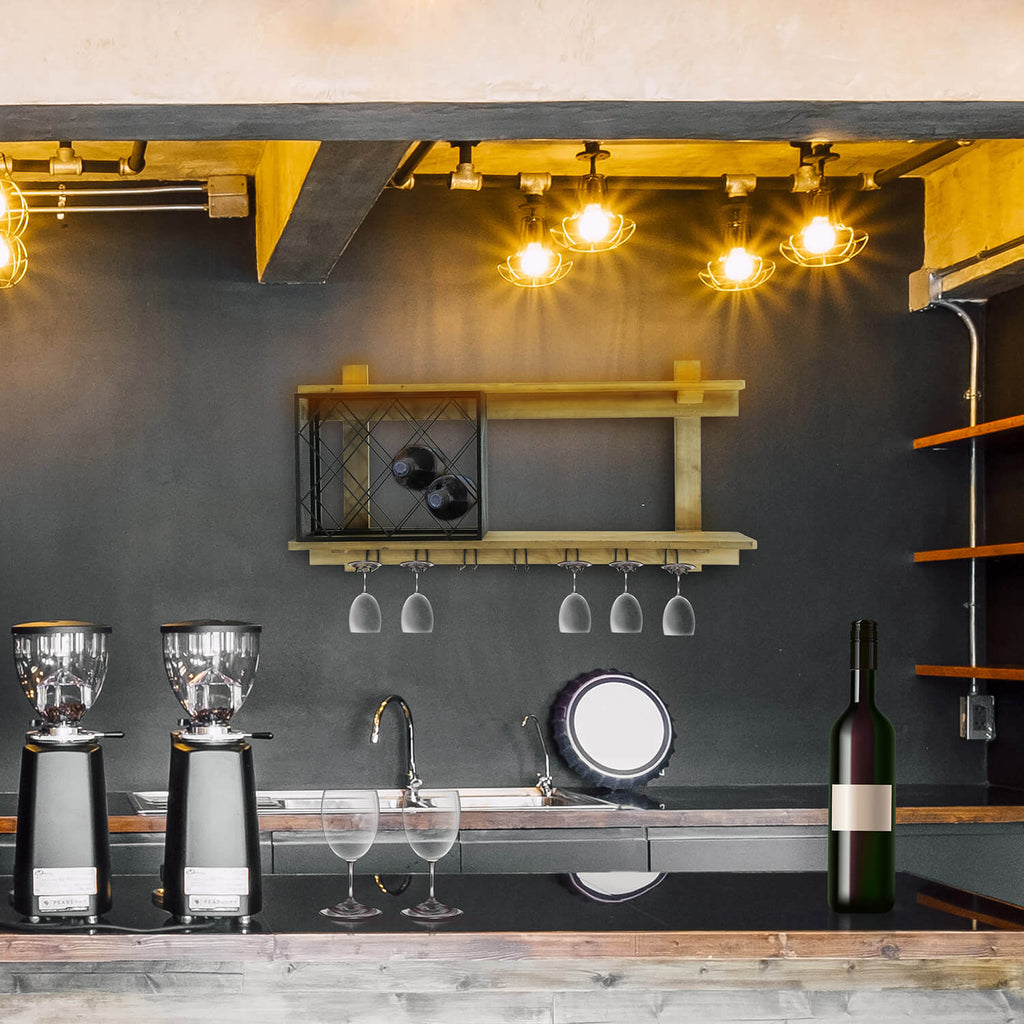 Regal mit Getränkehalter und Flaschenhalter 99x22x49 cm Uri in Holz