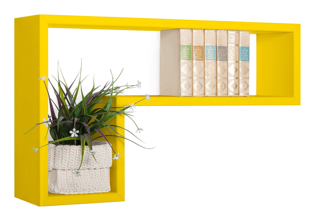 Mensola da Parete a Forma di L 61x37x15,5 cm in Fibra di Legno Lettera Giallo Canarino