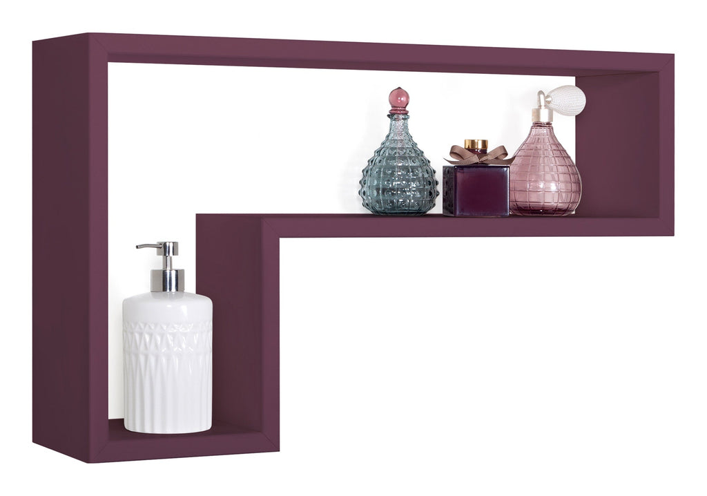 Mensola da Parete a Forma di L 61x37x15,5 cm in Fibra di Legno Lettera Viola Melanzana