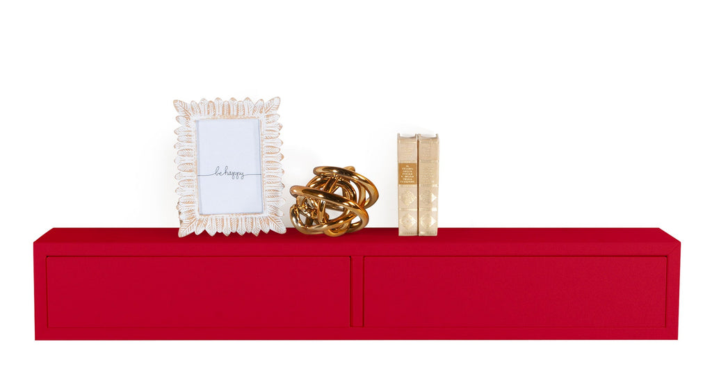 Mensola da Parete con 2 Cassetti 88,2x13,4x20 cm in Fibra di Legno Domino Rosso
