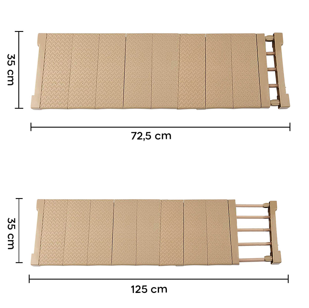 Das ausziehbare Regal ist ein Zubehör, mit dem Sie den Raum in Ihren Möbeln, Sideboards und Kleiderschränken auf sehr einfache und effektive Weise optimieren können. Sie haben keine ungenutzten Ecken mehr in Ihren Möbeln, jede Oberfläche wird voll ausgenutzt, um alle Ihre Kleidungsstücke, Küchenutensilien und kosmetischen Accessoires aufzunehmen. Für seine Befestigung benötigen Sie keine Schrauben, Löcher und Klebstoffe, Sie müssen nur die Teleskopstangen an den Enden des Möbelstücks anbringen, wo Sie sie platzieren möchten, und es wird in der Lage sein, das, was Sie darauf platzieren, stabil zu tragen