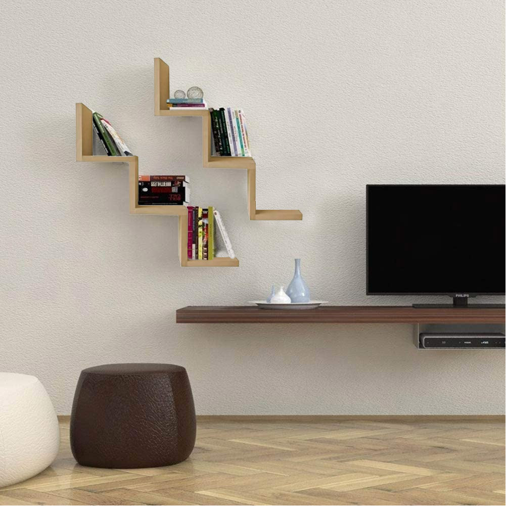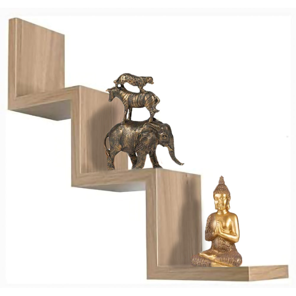 Mensola Parete Moderna Design Zig Zag Scaffale Muro 3 Ripiani Legno Naturale