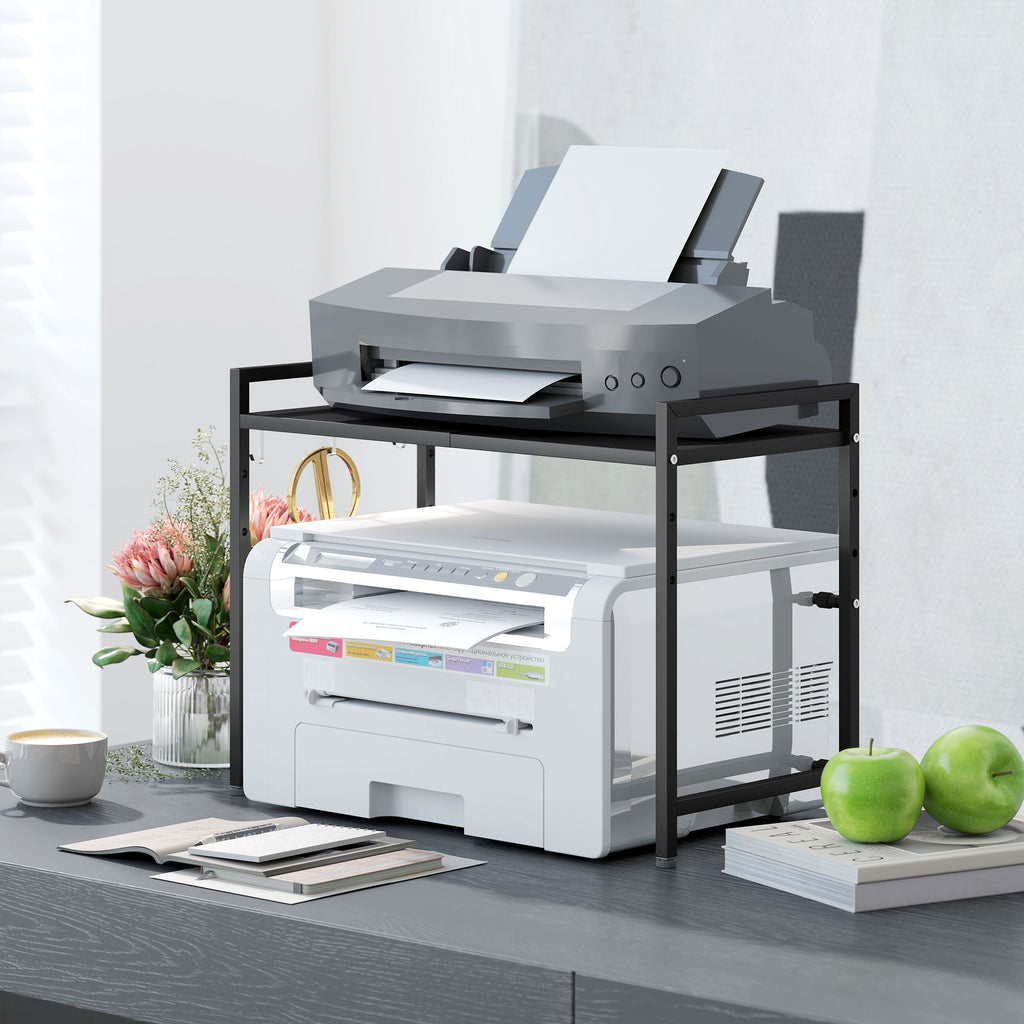 Porta l'ordine in cucina ad un nuovo step con il nostro porta microonde per creare organizzazione elegante e pratica. I 40 cm di spazio inferiore permettono di accogliere facilmente vari elettrodomestici, mentre i 3 ganci tengono gli utensili sempre a portata di mano. La struttura è estendibile da 39.5 a 64 cm e trasforma in un attimo lo scaffale in una raffinata postazione per adattarsi a ogni spazio o stile di arredo.