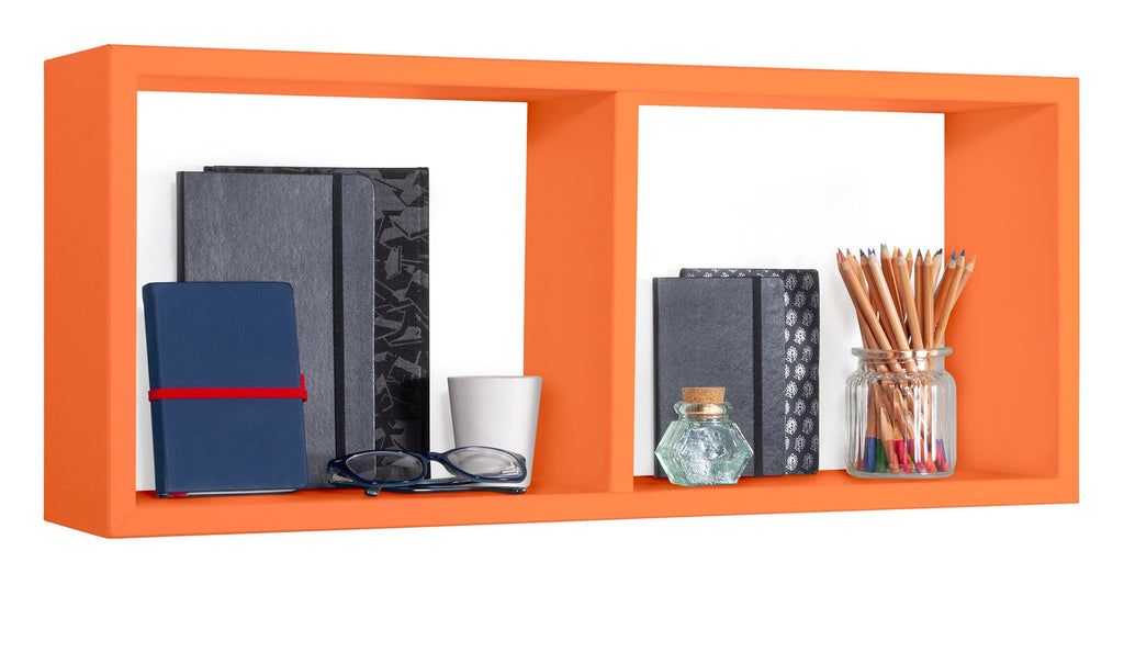 Mensola Rettangolare 2 Scomparti da Parete 70x30x15,5 cm in Fibra di Legno Morgana Arancio
