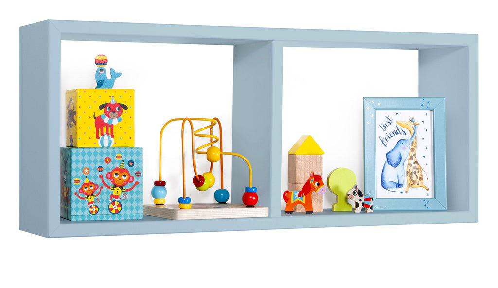 Mensola Rettangolare 2 Scomparti da Parete 70x30x15,5 cm in Fibra di Legno Morgana Blu Baltico