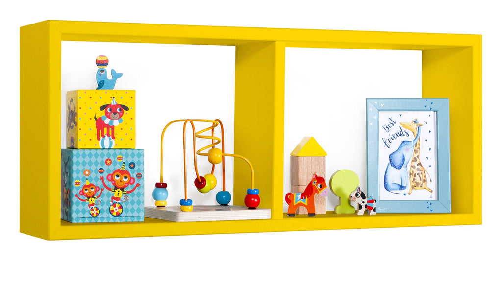 Mensola Rettangolare 2 Scomparti da Parete 70x30x15,5 cm in Fibra di Legno Morgana Giallo Canarino