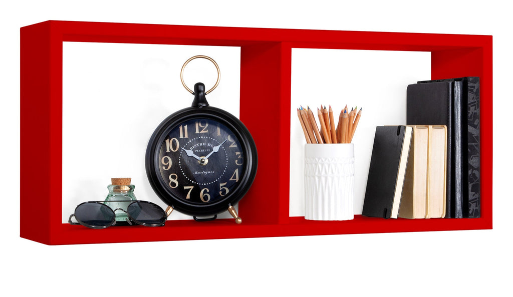 Mensola Rettangolare 2 Scomparti da Parete 70x30x15,5 cm in Fibra di Legno Morgana Rosso