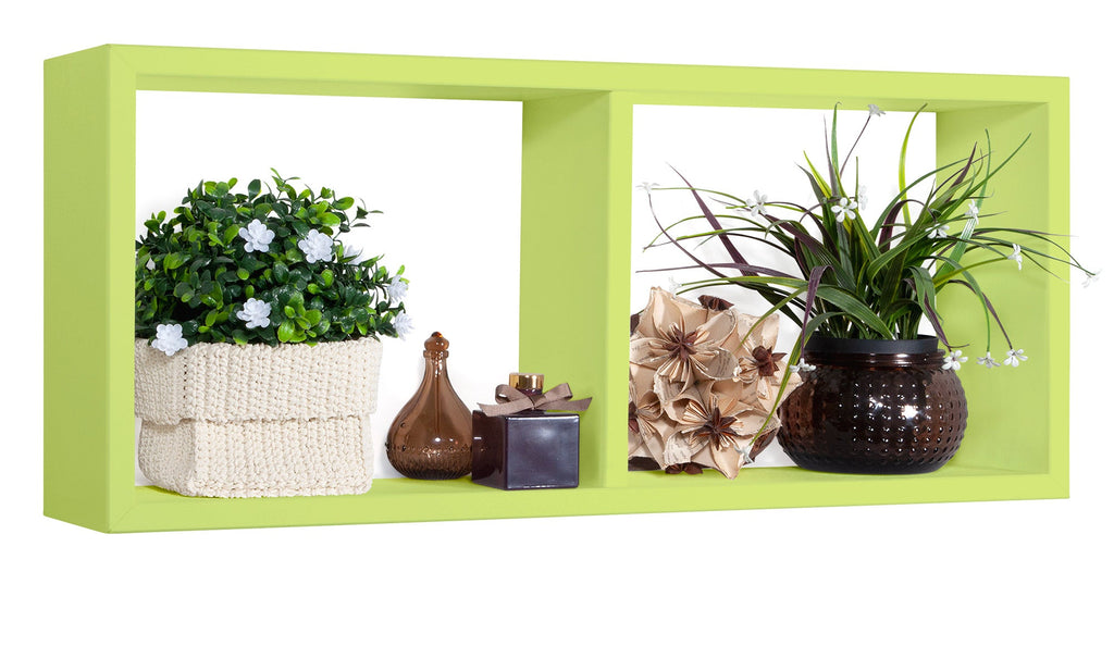 Mensola Rettangolare 2 Scomparti da Parete 70x30x15,5 cm in Fibra di Legno Morgana Verde