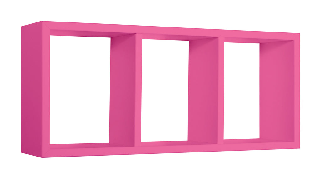 Mensola Rettangolare 3 Scomparti da Parete 70x30x15.5 cm in Fibra di Legno Tristano Fuxia