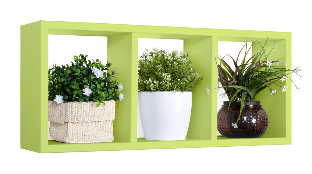 Mensola Rettangolare 3 Scomparti da Parete 70x30x15.5 cm in Fibra di Legno Tristano Verde