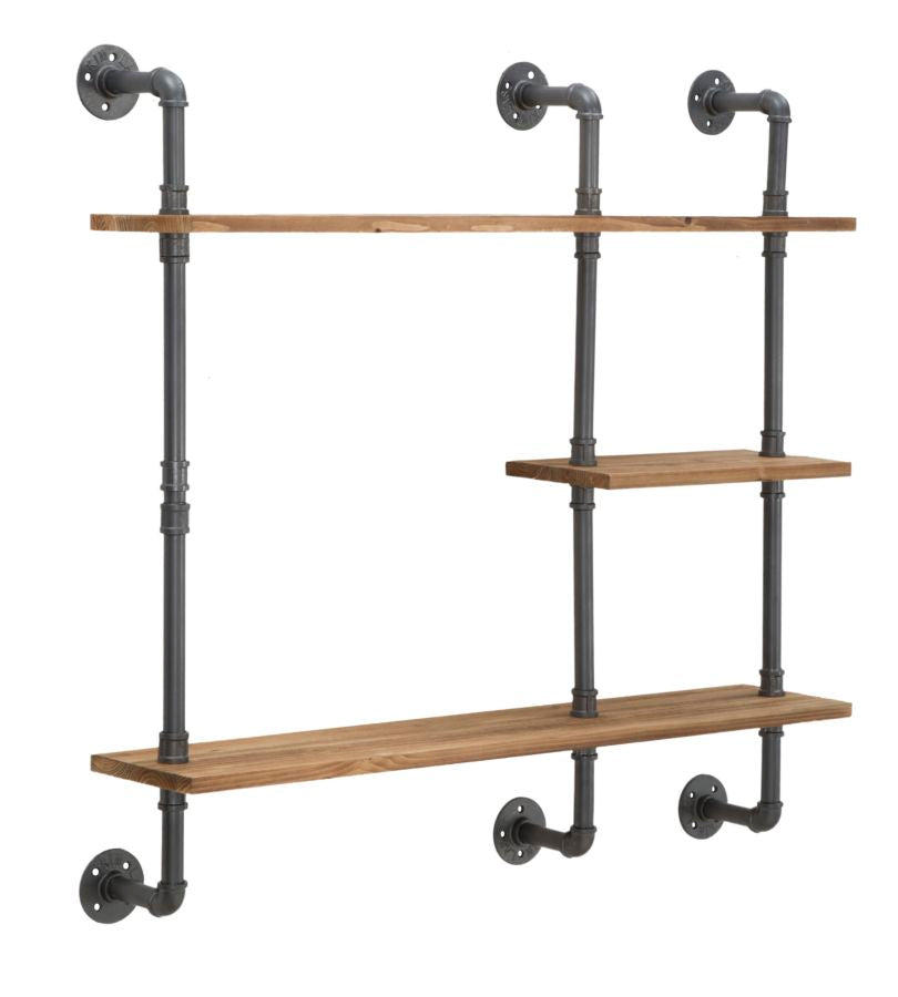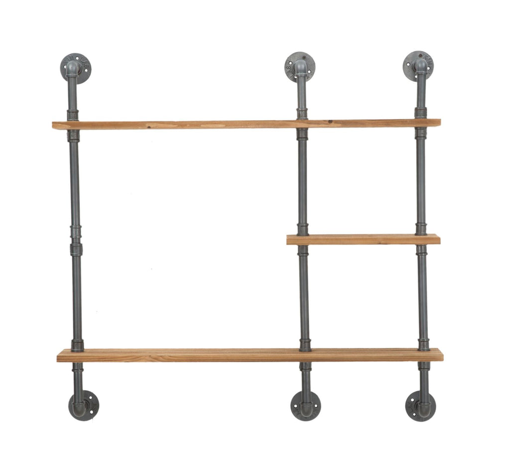 Manhattan Wandregal 100 x 23 x 98 cm Tannenholz und graues und braunes Eisen