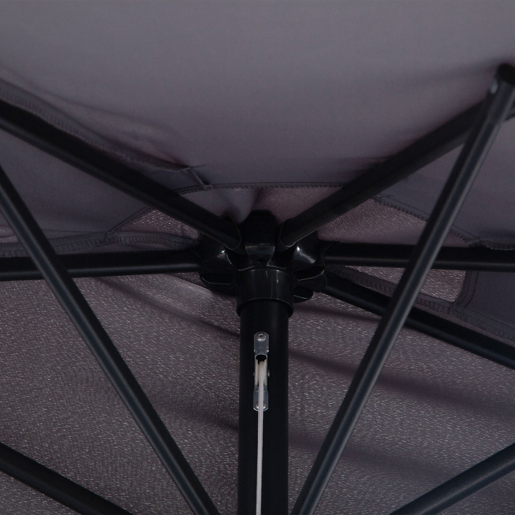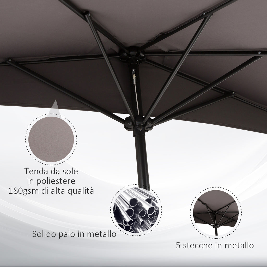 Halber Gartenschirm 269 x 138 x 236 cm aus Metall und grauem Polyester