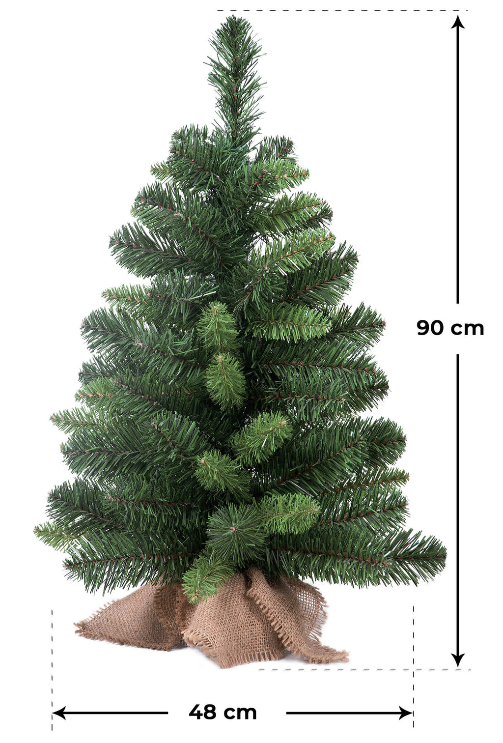 Mini Albero di Natale Artificiale 90 cm 118 Rami con Base in Juta Verde