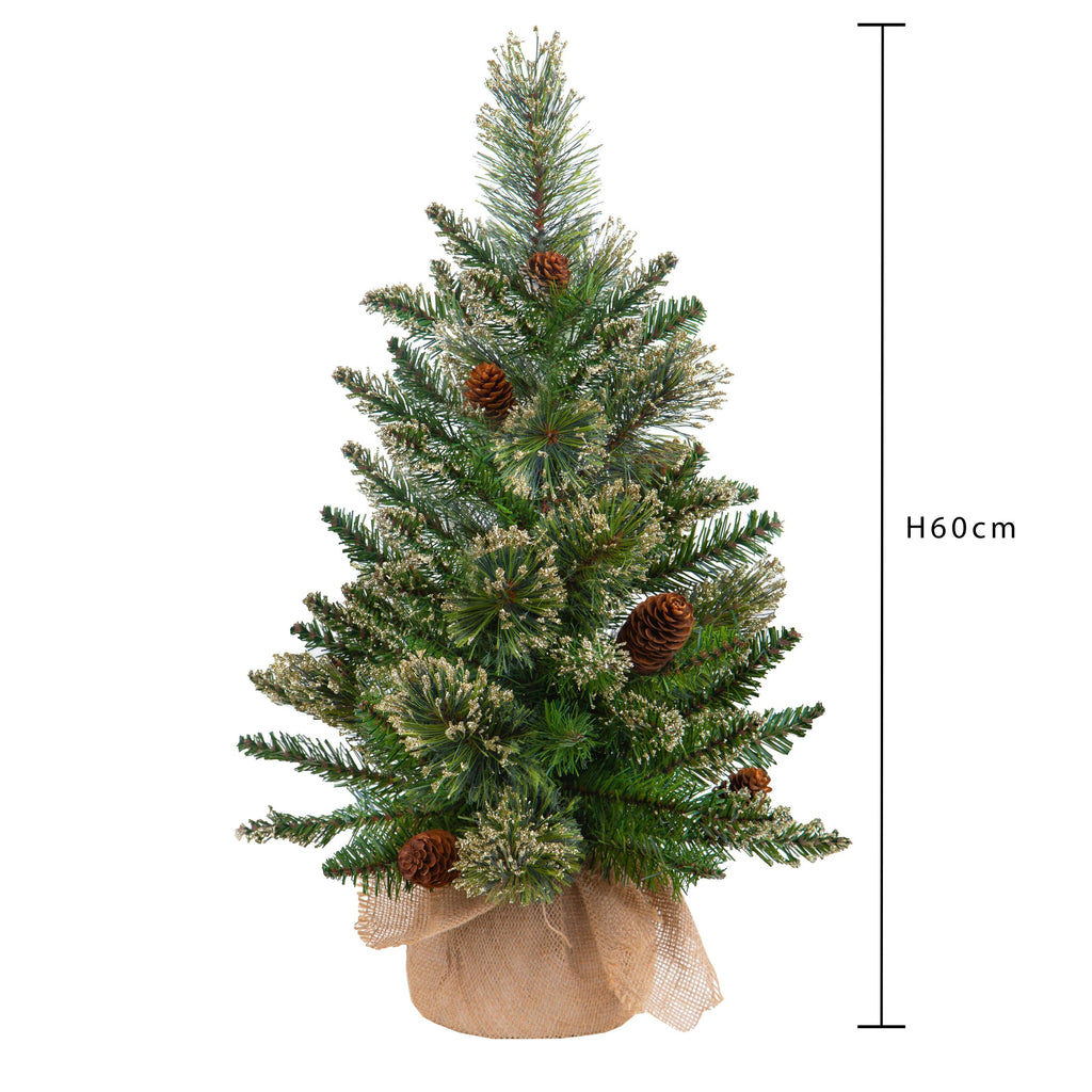 Künstlicher Mini-Weihnachtsbaum Tanne H60 cm mit Tasche und Glitzer und 60 grünen Spitzen