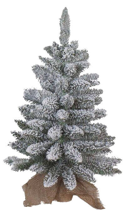 Mini Albero di Natale Artificiale Innevato 90 cm 105 Rami con Base in Juta Verde