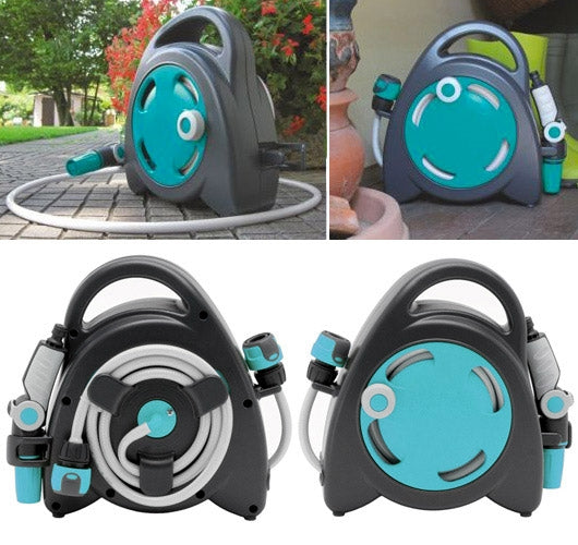 Tragbarer Mini-Schlauchaufroller 11,5 m für die Bewässerung von der Balkonterrasse, Bauer Aqua Bag, blau