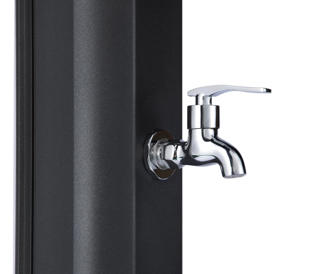 Mini Doccia a Riscaldamento Solare da Giardino e Piscina 20 litri con Miscelatore Caldo-Freddo Lavapiedi e Doccetta. Questa doccia solare unisce design elegante e ingombro ridotto. Consegnata con la sua doccetta rimovibile, il suo utilizzo è semplice e giocoso.