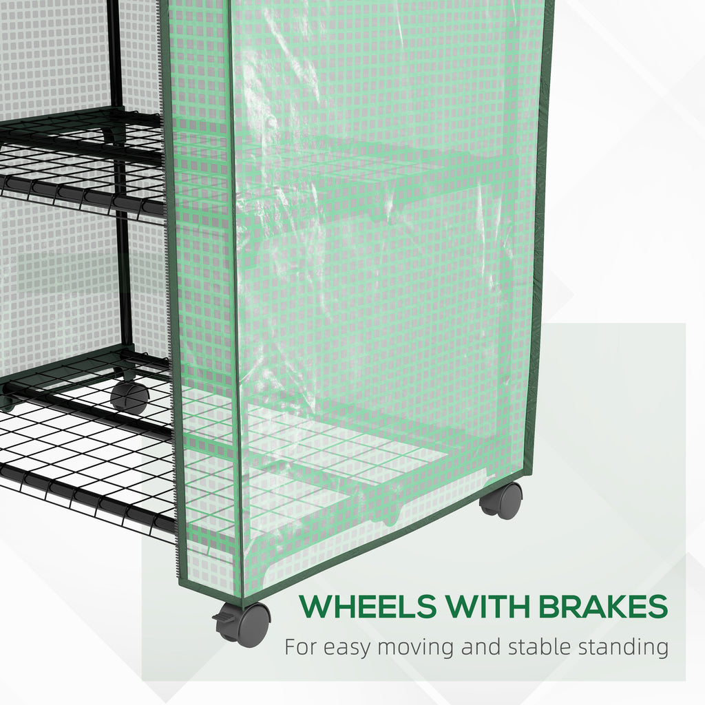 Mini Serra da Giardino con Copertura in PE 69x49x130cm 3 Ripiani e Ruote Verde