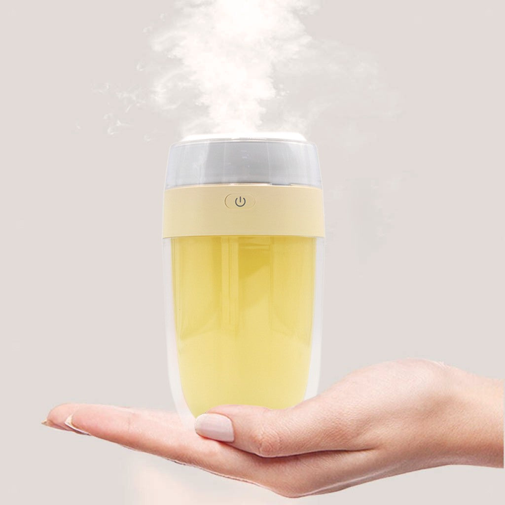 Wiederaufladbarer Mini-Luftbefeuchter 80x80x152 mm mit gelben LEDs