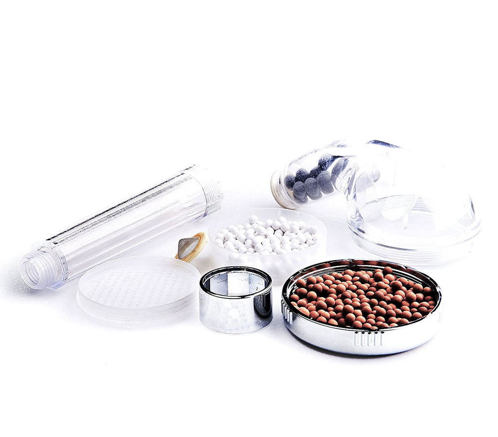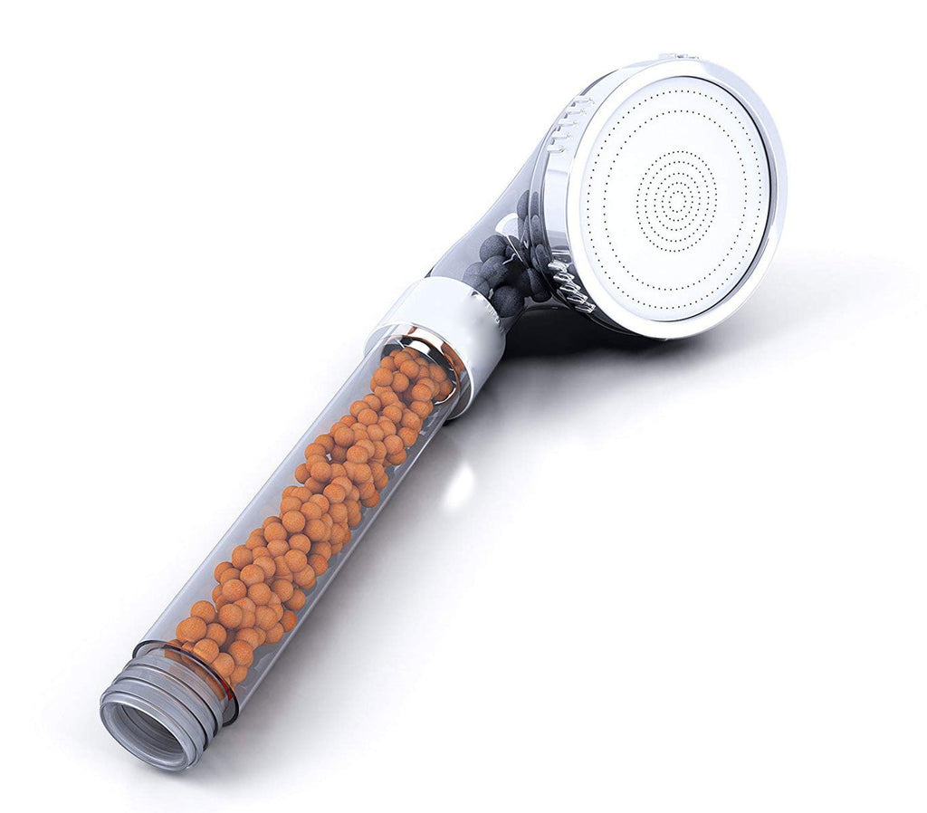 Der 2-stufige Mineralkugel-Duschkopf reduziert nach und nach die Verunreinigungen im Wasser, die häufig zu trockener Haut und Ungleichgewichten im epidermalen Gleichgewicht führen.