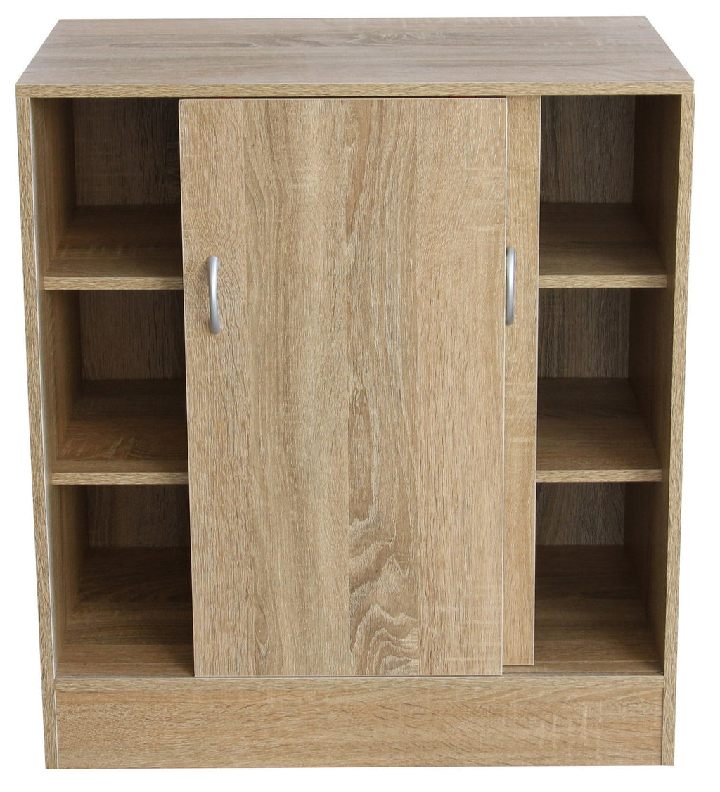 Schrank 2 Schiebetüren 3 Einlegeböden 60x30x71 cm in Spanplatte Eiche